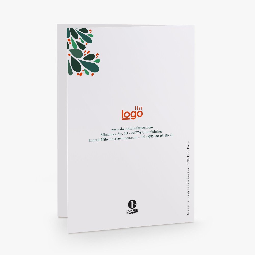 Versenden Sie Ihre Festtagsgrüße mit dieser hochwertigen Grußkarte, die individuell mit Ihrem Logo, Ihren Kontaktdaten, Ihrer Webadresse sowie Ihrem Grußtext gestaltet werden kann.