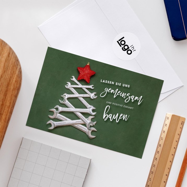 Versenden Sie Ihre Festtagsgrüße mit dieser hochwertigen Grußkarte, die individuell mit Ihrem Logo, Ihren Kontaktdaten, Ihrer Webadresse sowie Ihrem Grußtext gestaltet werden kann.