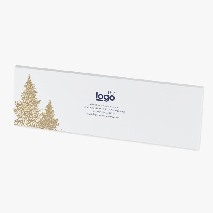 Die kleine Schokoladenbox kann mit Ihrem Firmenlogo, Ihren Kontaktdaten, Ihrer Webadresse sowie einem kurzen Grußtext personalisiert werden.